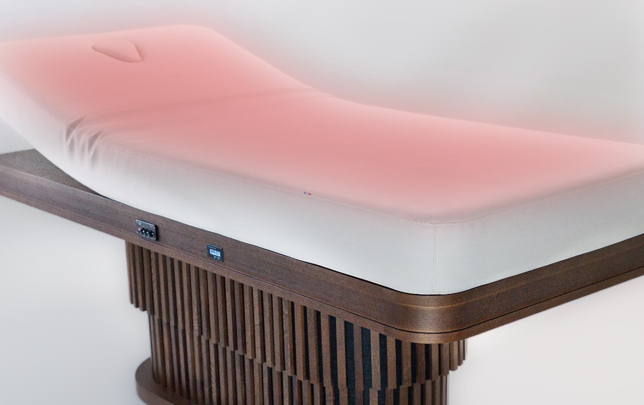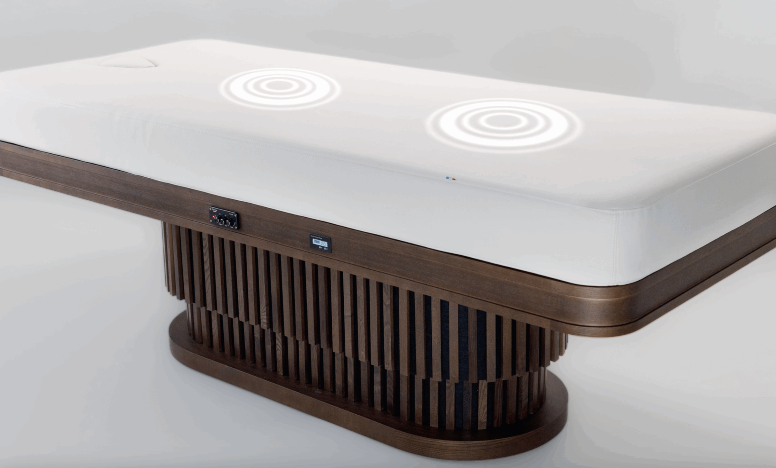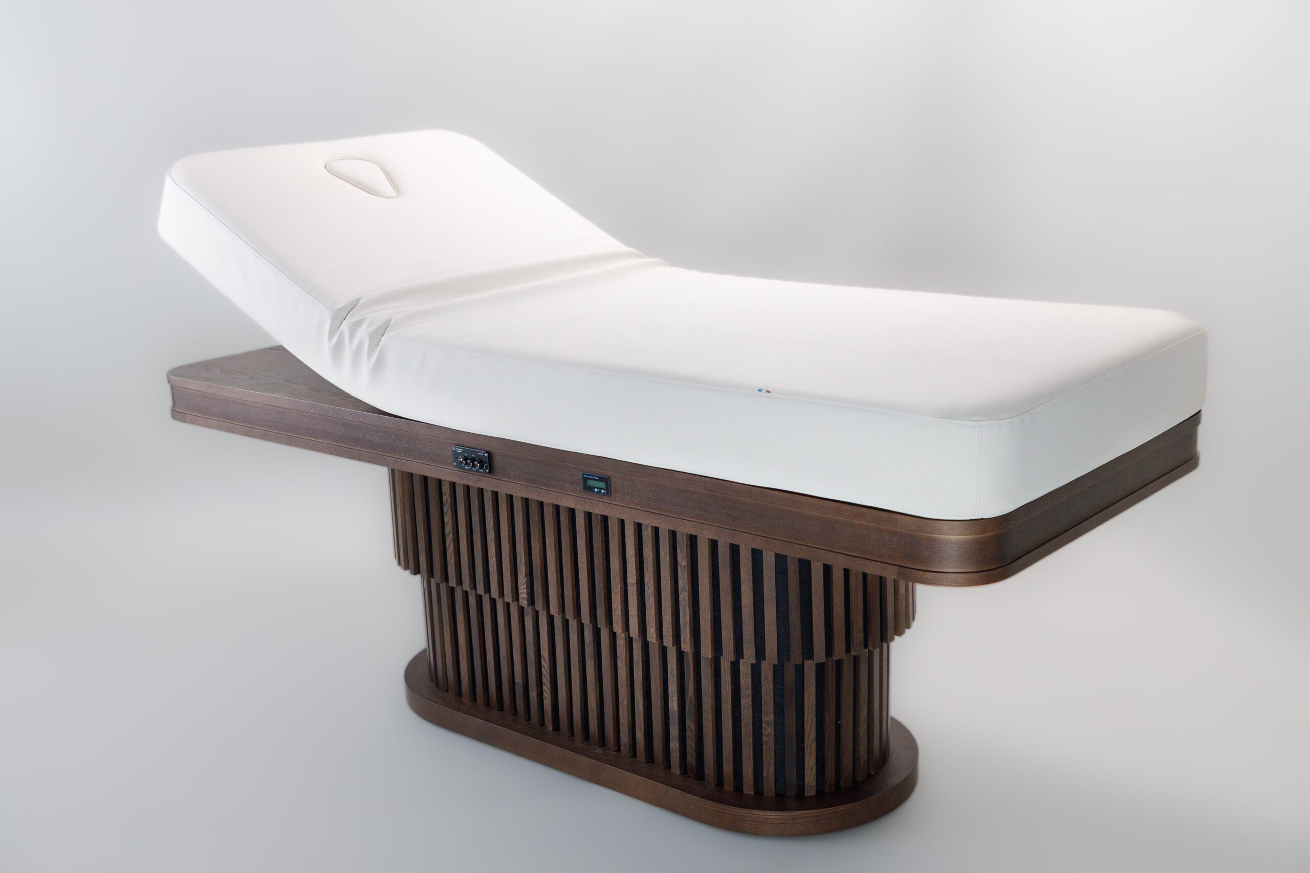 Le design de nos tables de massage est pensé comme un monolithe, un élément central et sacré.